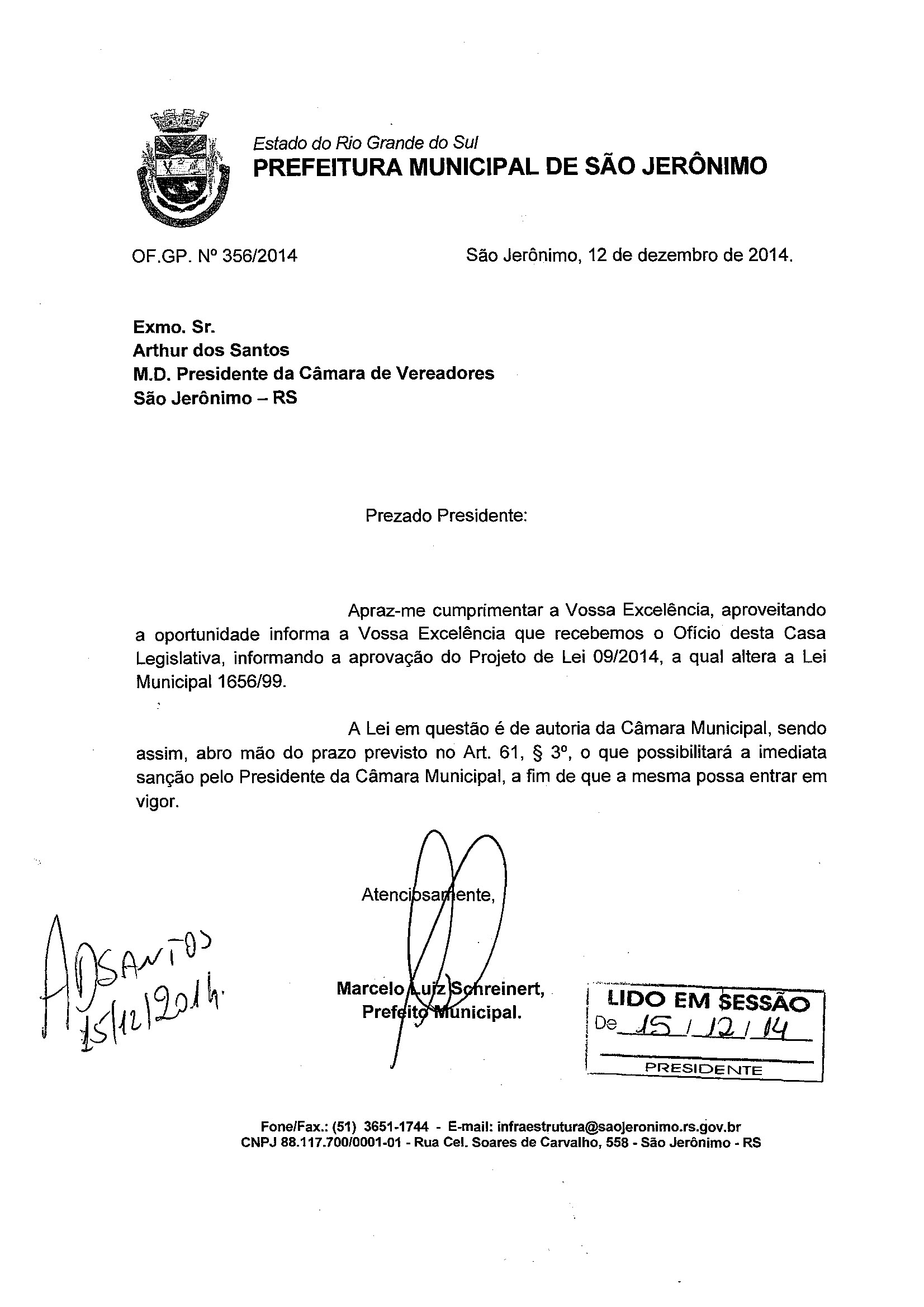 Ementa: OF. GP Nº 356/2014 - PREFEITURA MUNICIPAL.